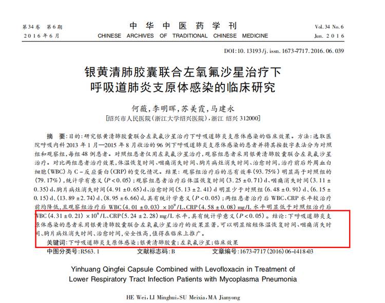 1. 与抗生素联用:确诊为支原体感染的患者,可使用银黄清肺胶囊+盐酸左氧氟沙星,可促进下呼吸道肺炎支原体感染患者的病情恢复,明显缩短体温恢复时间、咽痛消失时间、胸片病灶消失时间、治愈时间,经济实惠且安全有效。(本结论来源于中华中医药学刊中《银黄清肺胶囊联合左氧氟沙星治疗下呼吸道肺炎支原体感染的临床研究》一文)