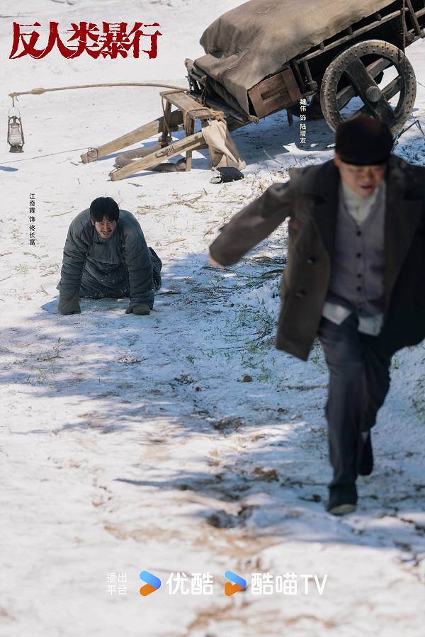 《反人类暴行》是演员江奇霖与导演算继《边水往事》后的再度合作,导演算以极具张力的镜头语言,勾勒出伪满洲国时期的压抑混乱,为佟长富这个角色搭建起鲜活的生存舞台;而江奇霖则吃透角色的灵魂底色,将一名只求安稳度日的送货郎,在伪满洲国政权压迫下的惶恐无措,给日本人送苹果维持生计的卑微奔走,后期对日本侵略者不遗余力的奋而反抗,演绎得层次分明,真切鲜活。
