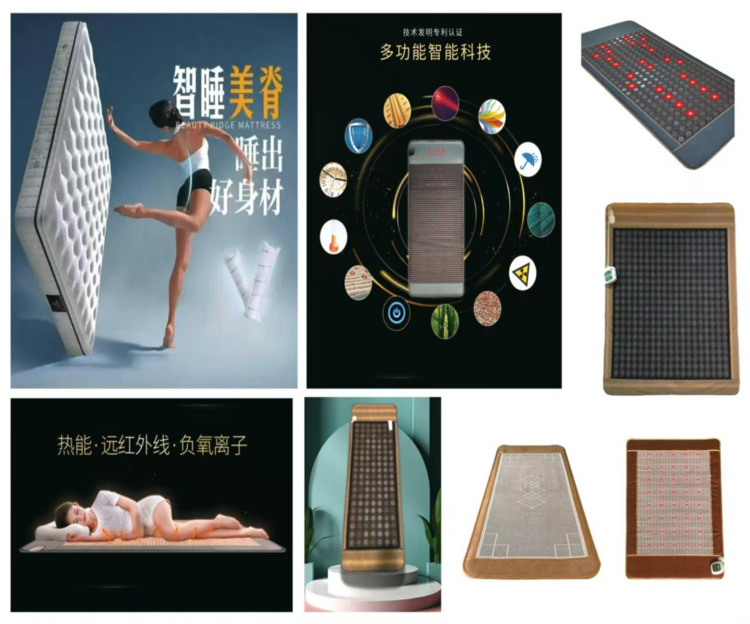 此外,旋磁内衣系列以旋磁技术为核心,为贴身养护注入科技力量;红光旋磁系列借助红光与旋磁技术,穿透人体组织,促进创面愈合与肌肉恢复;远红外抗菌服饰系列涵盖文胸、内裤、袜子、衬衫、羽绒服等全品类,以10A 抗菌标准与远红外技术,实现抗菌、保暖、养生多重功效;智能帽子系列集成负离子、红光、激光等技术,兼顾头部养护与日常穿搭;床上用品系列中的远红外抗菌七件套与光子超长波床垫、玉石能量床垫、生命体征监测床垫,让健康养护延伸至睡眠场景,实现24 小时全天候守护。