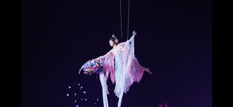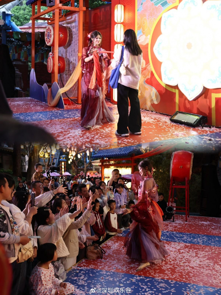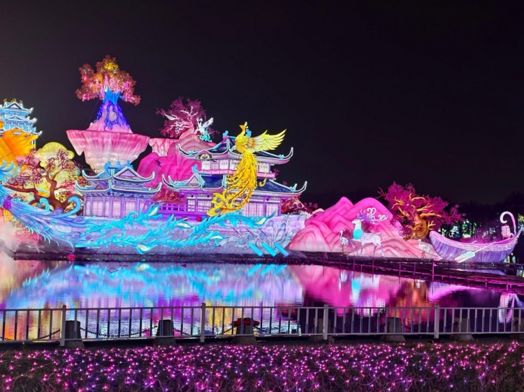更具吸引力的是,厦门园博苑花灯乐园 并不满足于做一个“逛一圈就结束”的夜游项目,而是通过更完整的内容编排,提升游客在园区内的停留时长和体验层次。白天,花海与园林为整体氛围打下基底;到了夜晚,花灯点亮空间,大秀持续带动现场节奏,NPC互动不断制造惊喜,休闲消费与社交拍照场景则让整个夜晚更有参与感和分享欲。与此同时,花灯乐园在桃海仙踪区域打造的威亚花仙赐福表演,也进一步提升了夜游的观赏层次与梦幻氛围。仙子凭威亚凌空翩跹,衣袂轻扬,身姿曼妙如画,随着玉手轻挥,漫天花瓣簌簌飘落,与粼粼波光、璀璨灯影交织成极具浪漫感的春夜画面,为游客带来更强的视觉记忆点和情绪感染力。